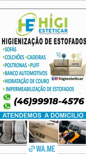 Higienização de Sofá, Higienização de Poltronas, Higienização de Colchão, Higienização de Cadeiras